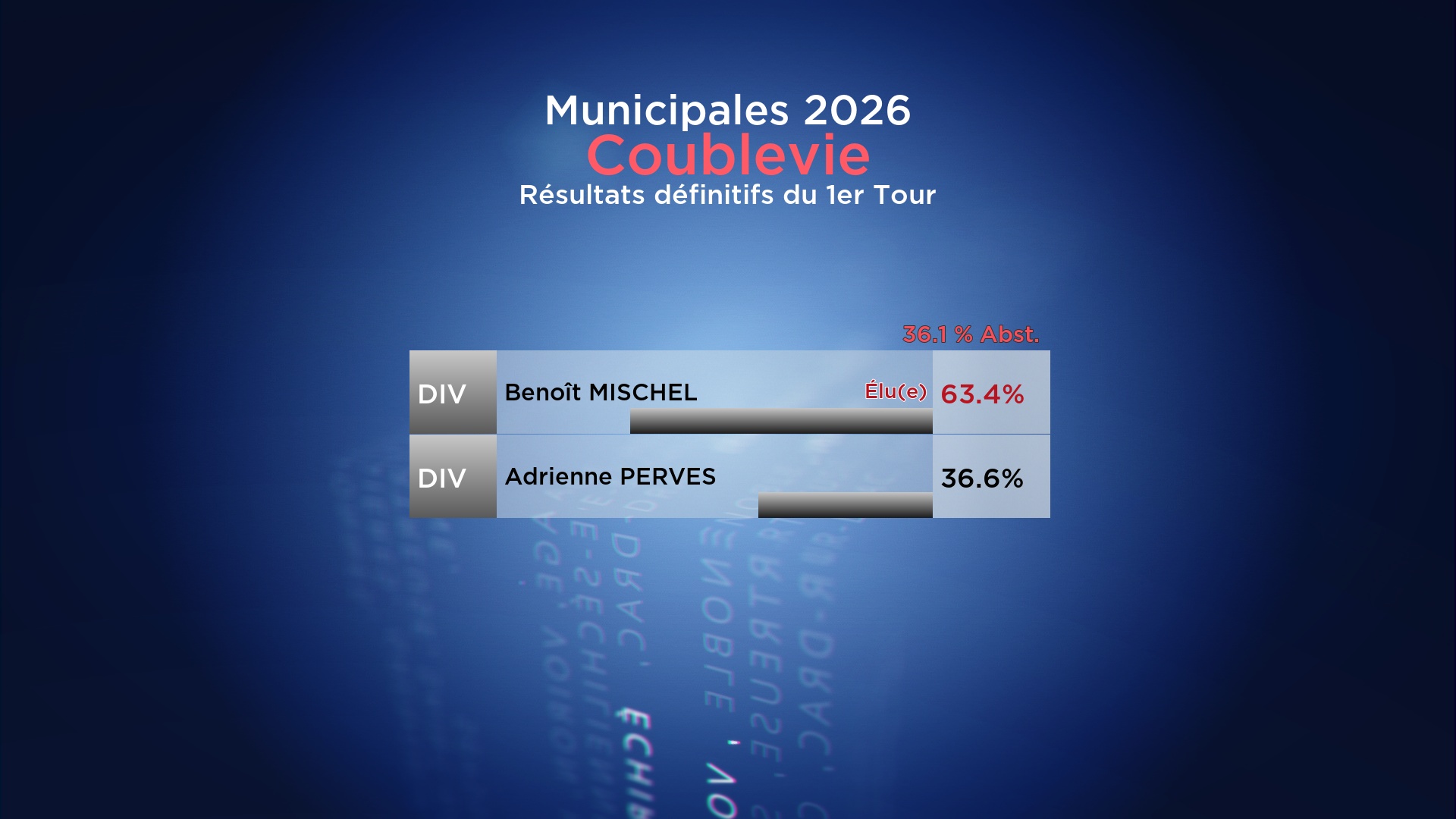 Résultats définitifs : la liste Ensemble pour Coublevie menée par Benoît MISCHEL (DIV) l’emporte avec 63.40% face à la liste Coublevie à coeur de Adrienne PERVES (DIV) qui obtient 36.60%.
