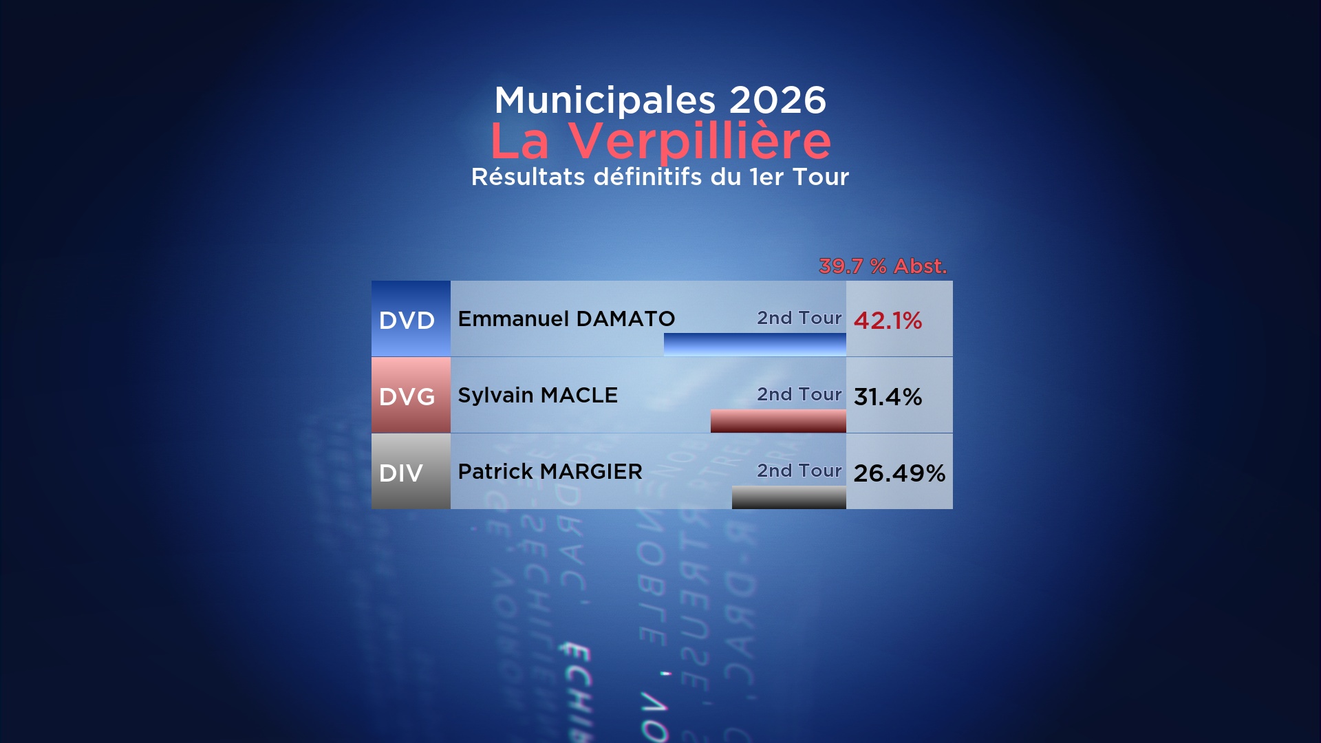 • La liste TOUT POUR LA VERPILLIERE menée par Patrick MARGIER (DIV) avec 26.49%