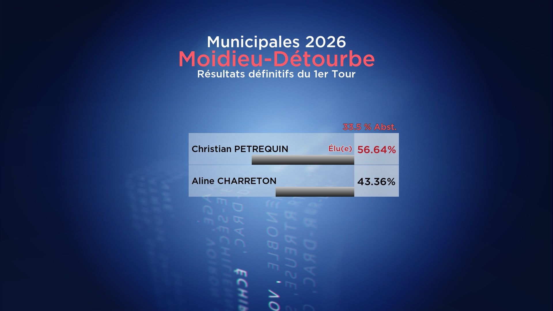 Résultats du 1er Tour des Municipales 2026 : Moidieu-Détourbe