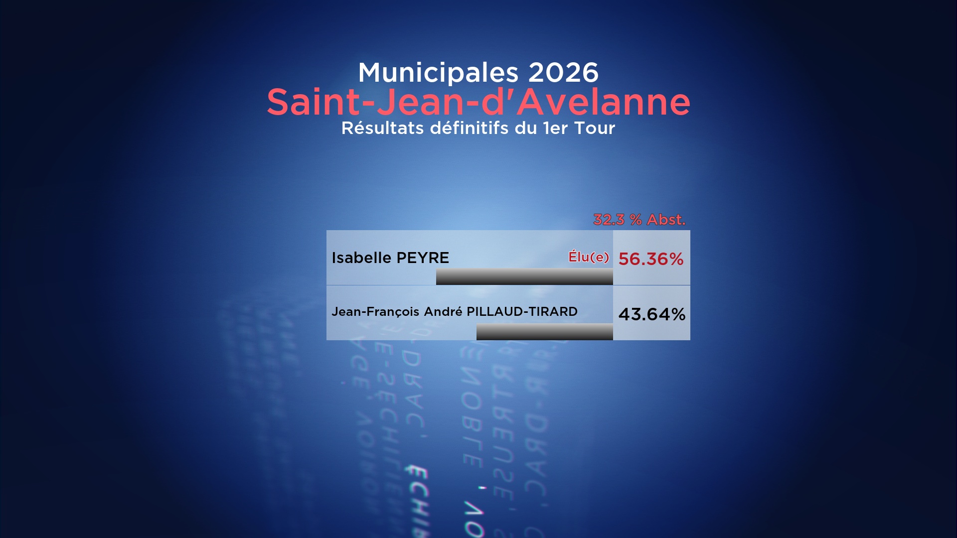 Résultats du 1er Tour des Municipales 2026 : Saint-Jean-d’Avelanne