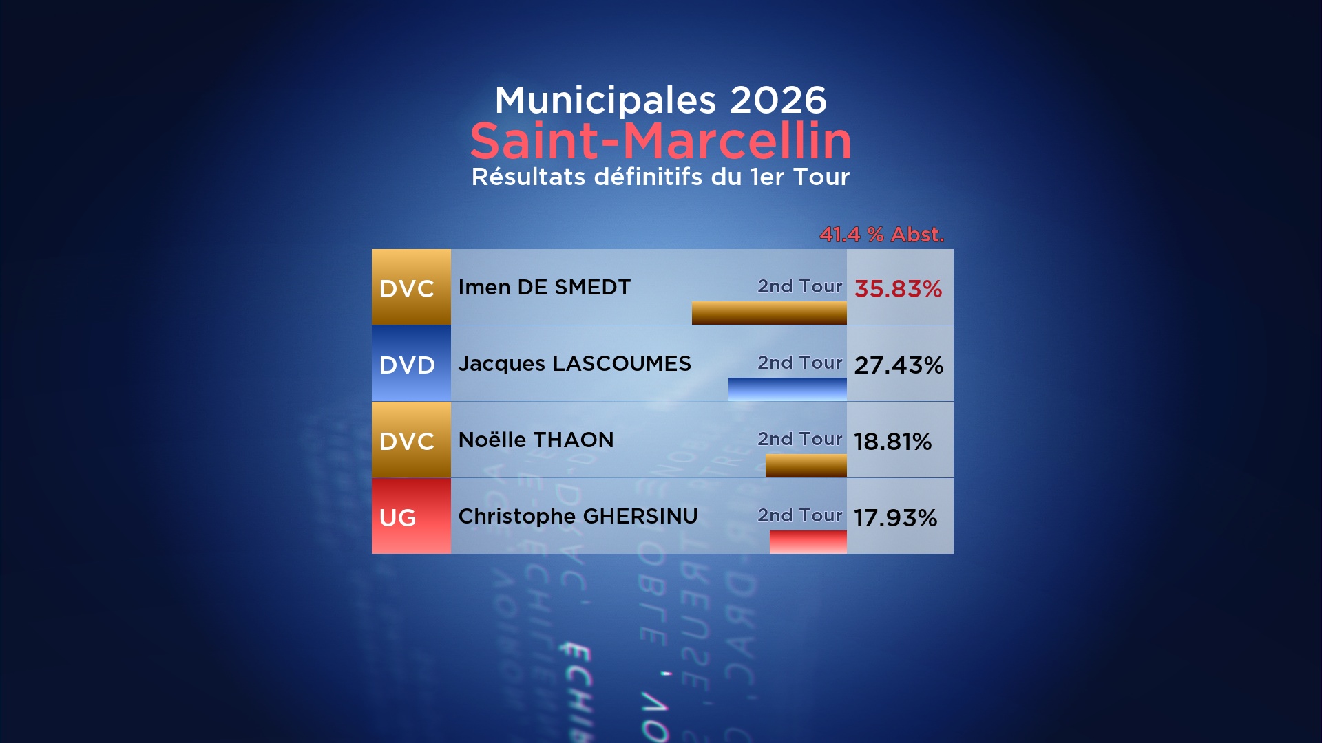Résultats du 1er Tour des Municipales 2026 : Saint-Marcellin