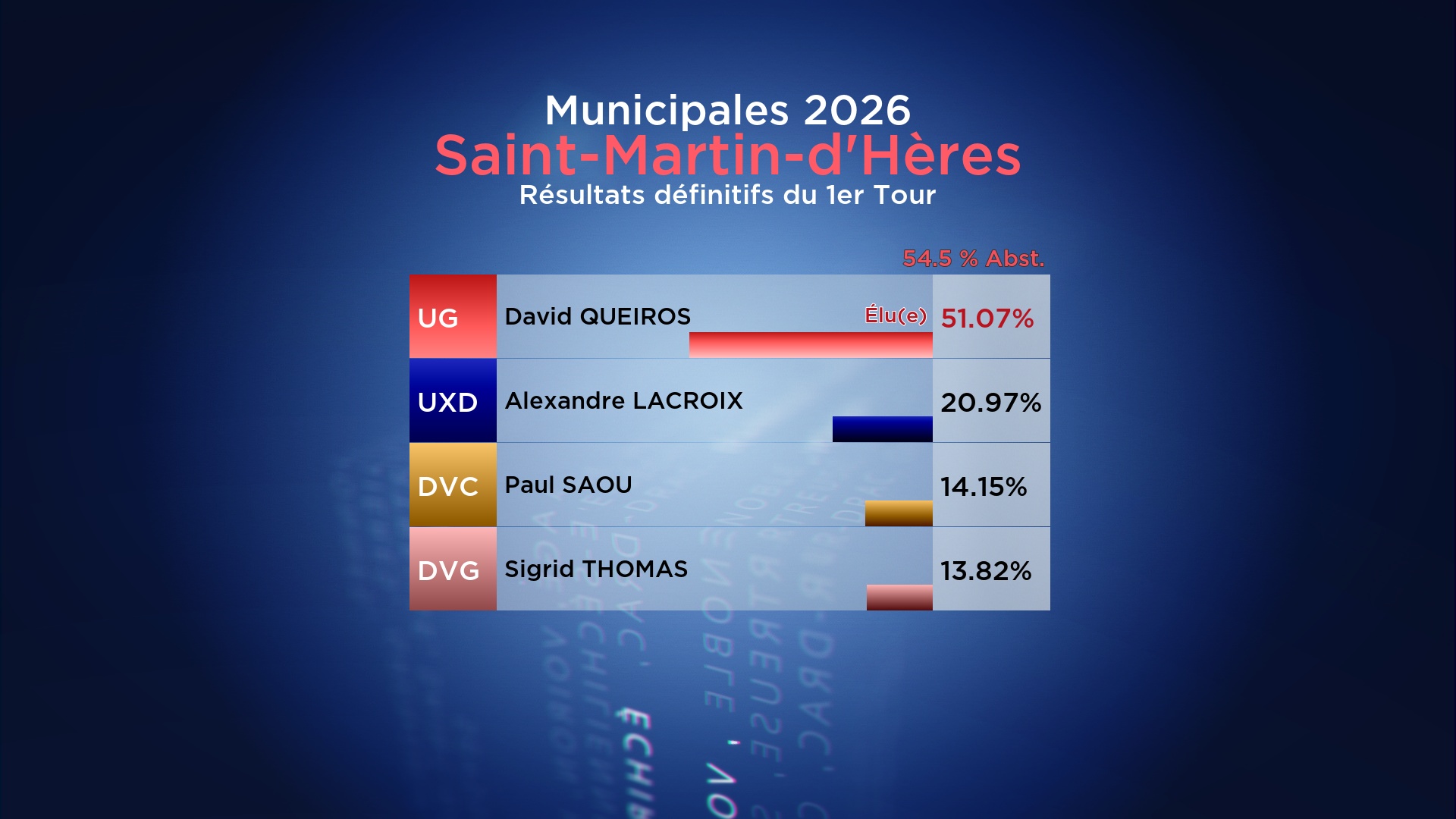 Résultats du 1er Tour des Municipales 2026 : Saint-Martin-d’Hères
