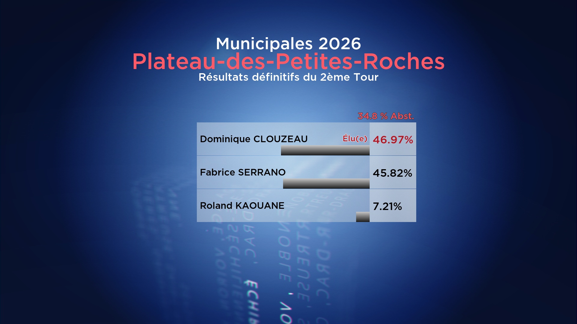 Résultats du 2ème Tour des Municipales 2026 : Plateau-des-Petites-Roches