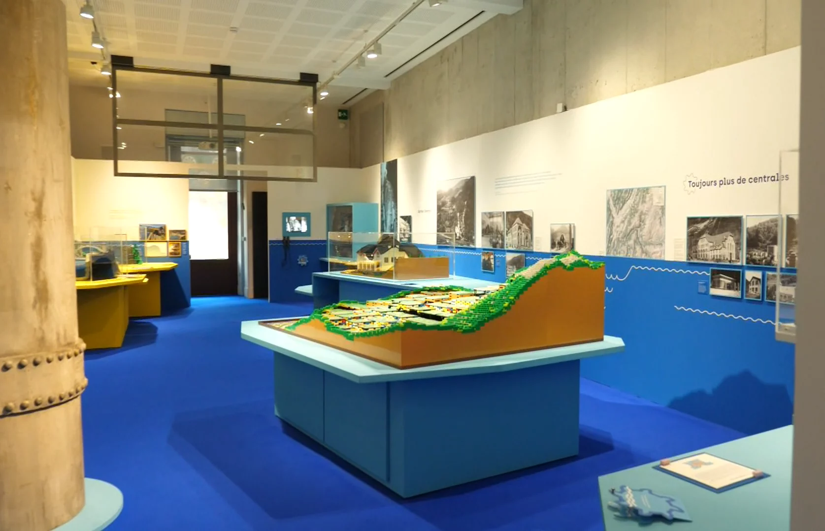 Le parti pris de l’exposition est aussi simple qu’efficace. Pour rendre accessible une mécanique souvent abstraite, la Maison Bergès a fait appel à des constructeurs Lego spécialisés. « On s’est dit qu’on allait utiliser les Lego pour inviter les gens à découvrir ces centrales », explique Frédérique Virieux. Les maquettes, réalisées par The Brick Detective de Saint-Étienne-de-Saint-Geoirs et par Unibrick, reproduisent avec soin plusieurs sites du Grésivaudan, dont les trois grands barrages qui dominent la salle principale : Monteynard, Saint-Egrève et Grand’Maison.