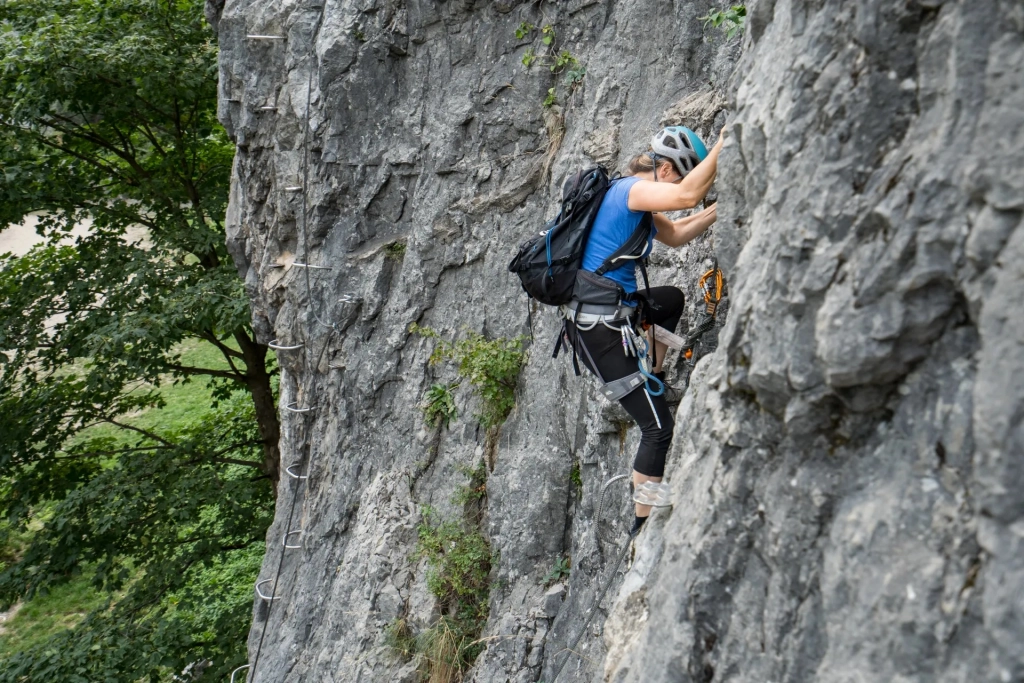 Le parcours se divise en deux sections complémentaires : une première partie accessible aux débutants, idéale pour une initiation en douceur, et une seconde plus sportive, réservée aux pratiquants expérimentés. L’ensemble offre une expérience vertigineuse mais sécurisée, grâce à la ligne de vie continue et aux aménagements entretenus régulièrement.