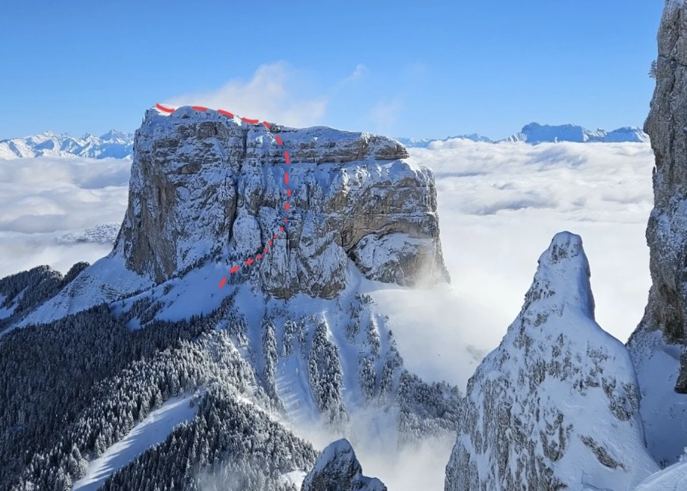 Si vous apercevez des traces de ski sur les falaises abruptes du Mont-Aiguille, vous n’êtes pas la proie d’hallucinations. Trois skieurs expérimentés ont effectivement réussi, cette semaine, la descente audacieuse de ce sommet emblématique de l’Isère.