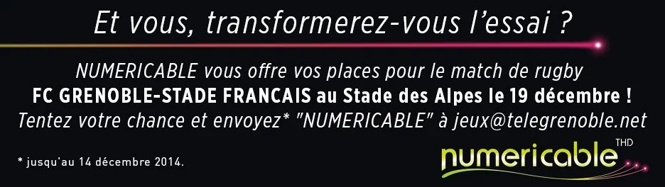 Jusqu’au 14 décembre, envoyez « numéricable » à jeux@telegrenoble.net accompagné de vos coordonnées et tentez de remporter vos places pour le 19 décembre.