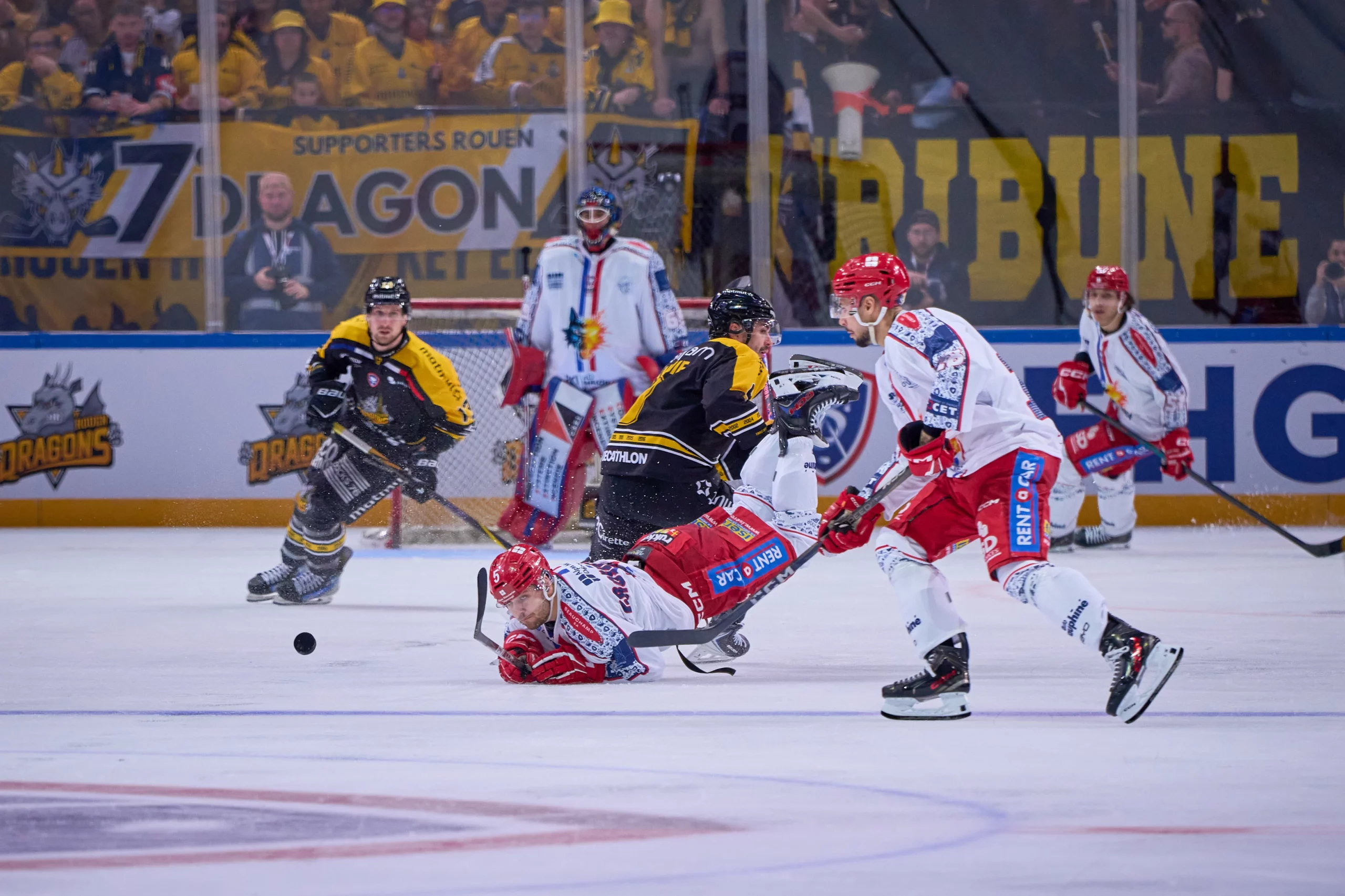 C’était leur quatrième finale d’affilée dans la capitale… mais les Rouennais ont balayé les espoirs des Grenoblois, sévèrement battus 6-1. Un scénario cauchemardesque à l’image des 5 premières minutes, durant lesquelles les Brûleurs de Loups ont encaissé 3 buts. Récit.