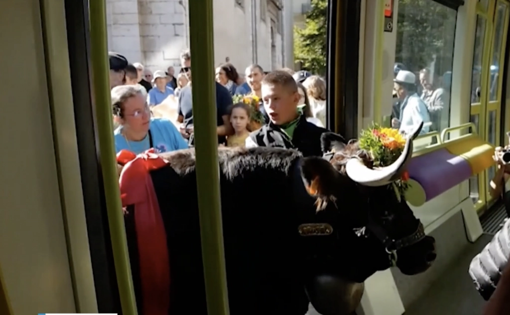 Cette gratuité concerne aussi bien le réseau de l’agglomération grenobloise que celui le Grésivaudan et du Pays Voironnais. Les années précédentes, les vaches, invitées vedettes de la Descente es alpages, avaient même le droit à leur petit tour symbolique en tram (notre photo). Mais elles seront les grandes absentes de l’édition 2025 à cause de l’épidémie de dermatose nodulaire qui sévit actuellement dans la région et qui restreint les déplacements de bovins.
