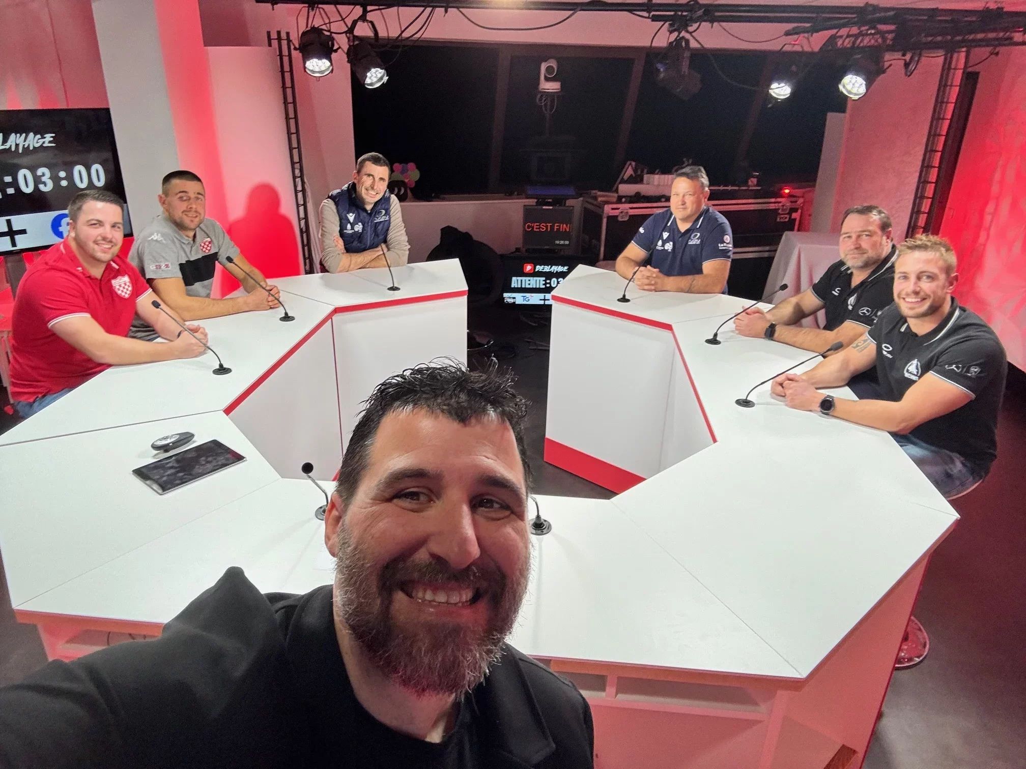 Le temps fort de l’émission, c’était le débrief de Rugby Club Vif Monestier Trièves – UA Tullins-Fures en R1. Une rencontre analysée avec les témoins du match – Côté UA Tullins-Fures, les 2 joueurs Etienne Vesin et Thibaud Perrin. En face, le RC Vif Monestier Trièves était représenté par Philippe Cavaliere, coach des 3/4, et Thibaut Ramlot le capitaine qui reviendra sur le moment fort dans les vestiaires en vidéo.
