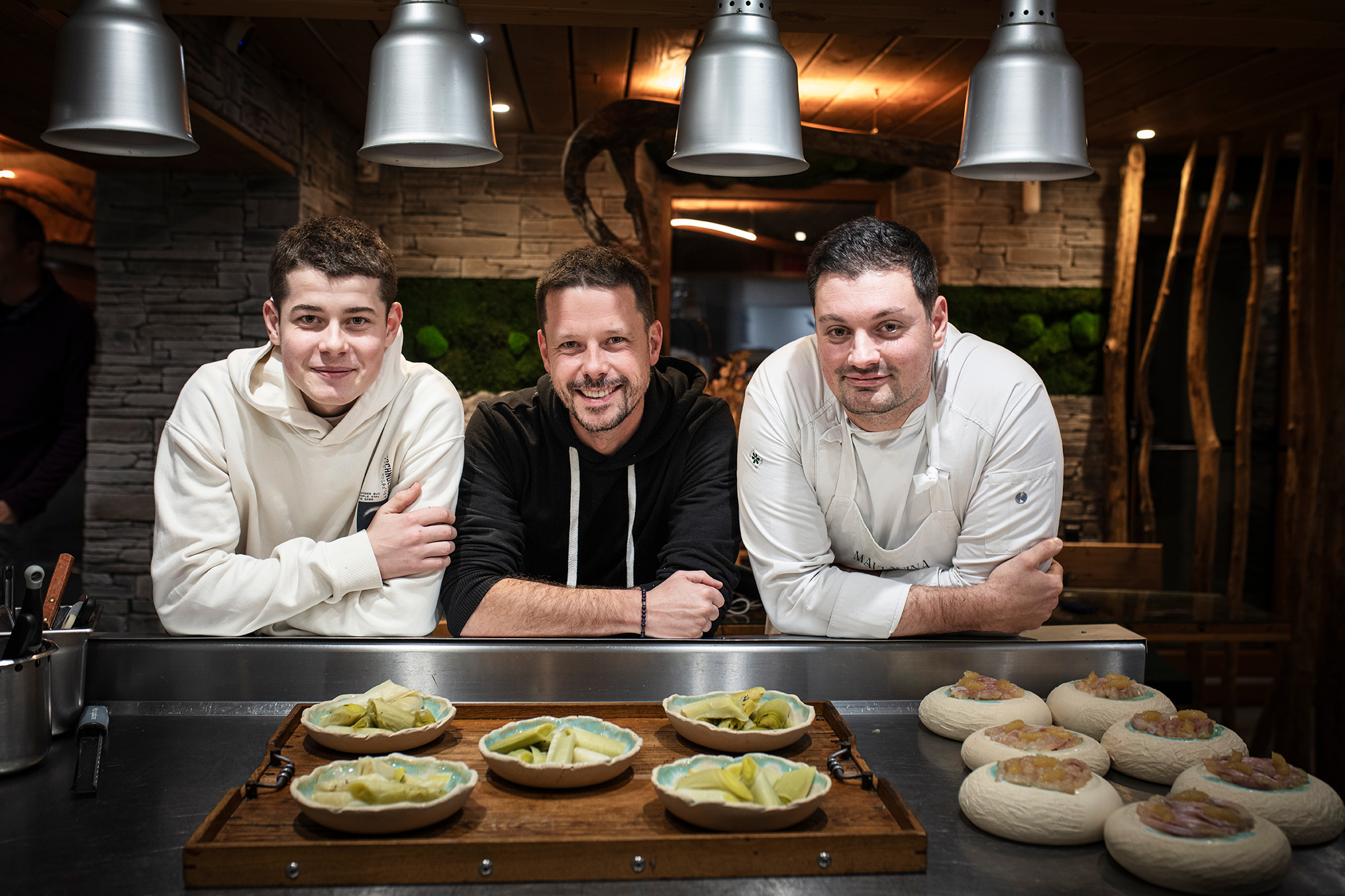 Dès l’entrée, la cuisine ouverte invite les convives à plonger dans l’univers des trois chefs. Certains auront même la chance de dîner face aux fourneaux, au plus près de l’action. Le menu « Confiance », décliné en 4, 6 ou 8 services, surprend par des assiettes servies à l’aveugle, révélant des saveurs inoubliables. La carte, composée à 90 % de produits bio, met en avant des ingrédients de saison, transformés avec une technique précise. Même la vaisselle et le mobilier portent l’empreinte locale, conçus par des artisans de la région.
