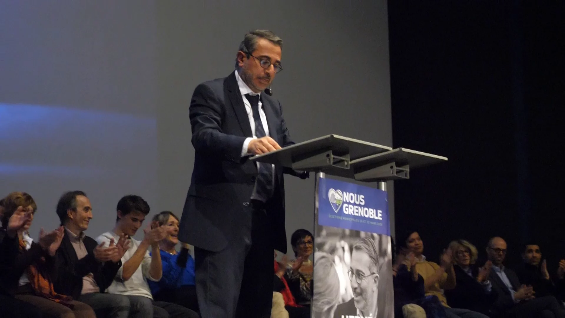 Ce jeudi 5 février, Hervé Gerbi, tête de liste « Nous, Grenoble », a tenu son second meeting de campagne dans une salle du Pathé Chavant. Devant un public d’un peu plus de 350 personnes, le candidat a cherché à remobiliser ses soutiens, quelques heures après la publication d’un sondage peu favorable.