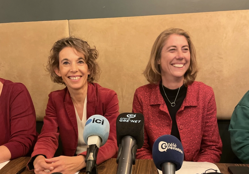 La candidate socialiste Amandine Germain (au gauche sur la photo) a décidé de rejoindre la liste écologiste menée par Laurence Ruffin (à droite) pour les prochaines municipales à Grenoble. Ce vendredi soir, lors de la conférence de presse scellant cette union, elles ont parlé, d’une même voix, d’un accord historique.