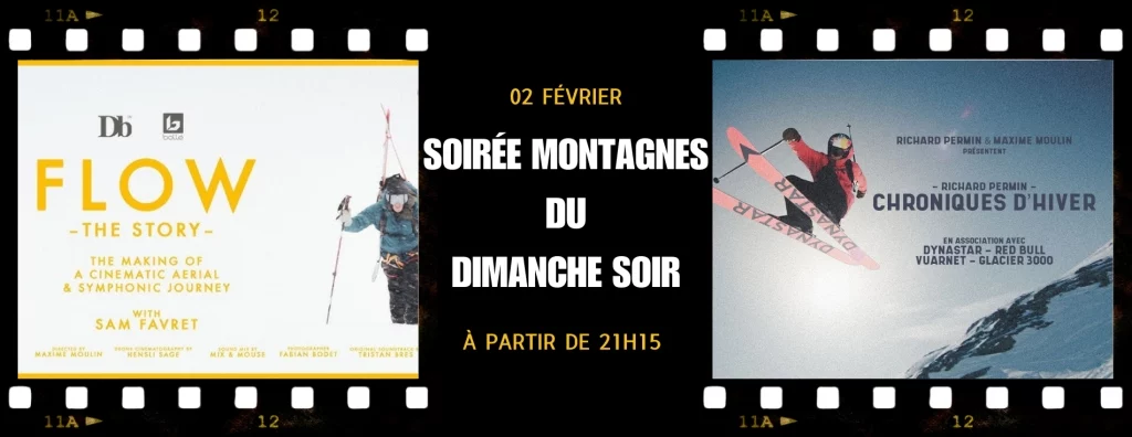 2 films au programme cette semaine : « Flow » de Sam Favret, au cœur des montagnes de Chamonix et des Dolomites et « Chronique d’hiver » de Richard Permin, 10 ans de parcours à travers le monde en hiver pour ramener les plus belles images possibles…
