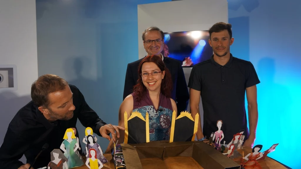 Avec le triathlète Dorian Coninx, le directeur de GEM Loick Roche et une drôle de sculptrice de papier…