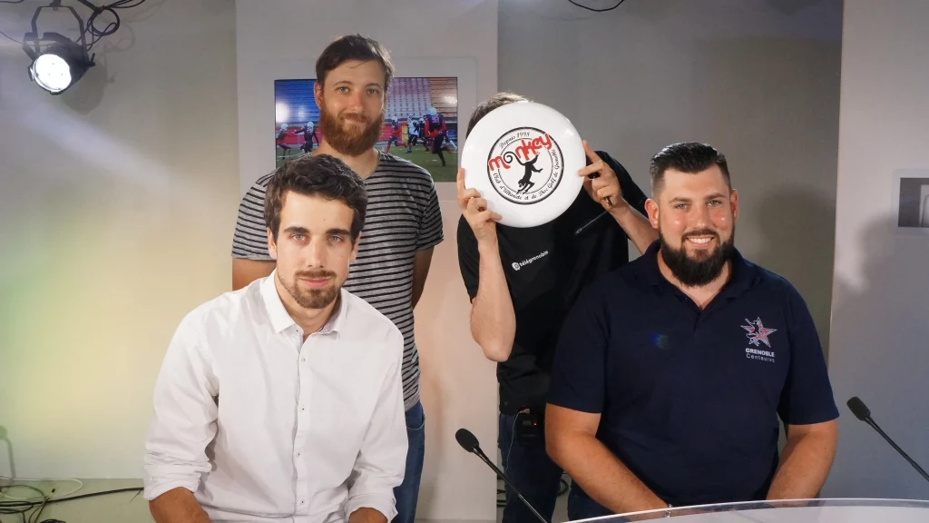 Avec Axel Pittet, Organisateur du Trail de la Dent de Crolles ; François-Xavier Dupray, Membre des Monkey Foo (ultimate frisbee) et Alexis Barbotin, Les Centaures de Grenoble (foot US).
