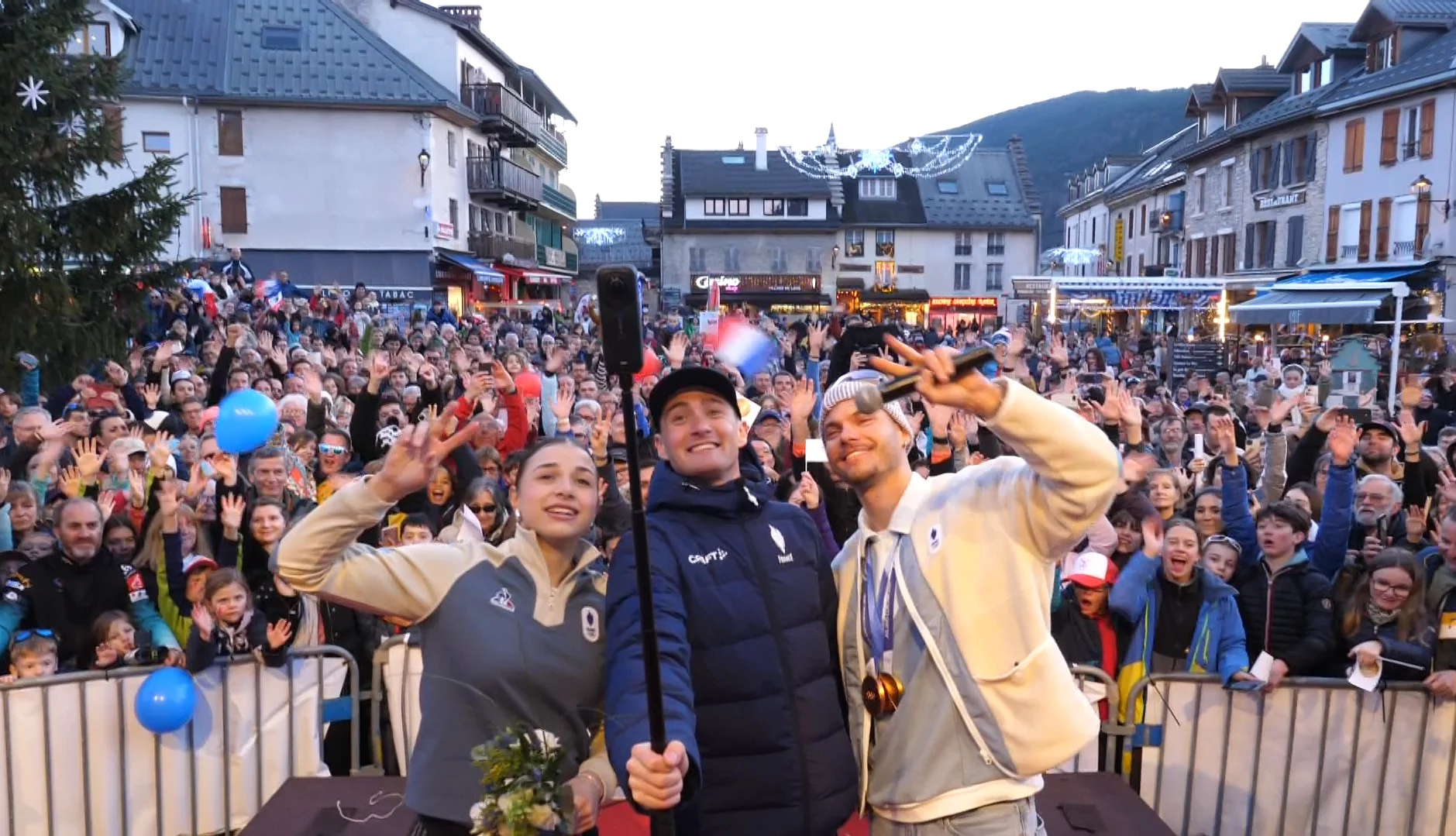 Médailles autour du cou, émotions plein la tête : Émilien Jacquelin (biathlon), Mathis Desloges (ski de fond) et Violette Pianel-Couriaut (hockey) ont soulevé une foule de 2000 personnes sur la place du village mercredi soir… Célébrer, remercier, voir «en vrai» : habitants, vacanciers, familles et jeunes sportifs ont profité d’une belle fête populaire pour les olympiens du plateau !
