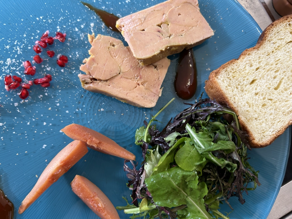 Accompagnez de deux morceaux de coings rôtis (ou tout autre fruits de saison), une tranche de brioche toastée et un mélange poivre et sel de Guérande. Dégustez !