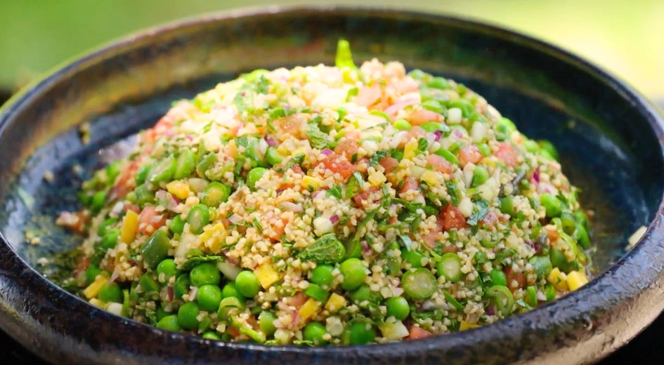 Son taboulé libanais ? Un concentré de fraîcheur et d’arômes, prêt en un clin d’œil. Une salade généreuse, croquante et parfumée, parfaite pour savourer l’été au sommet !