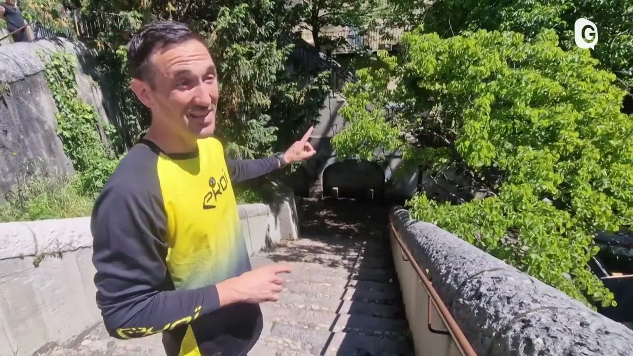 Descente VTT sur un parcours urbain depuis les contreforts de la Bastille à Grenoble avec une vingtaine de pilotes internationaux au départ de cette 3ème édition organisée par Aurélien Fontenoy.