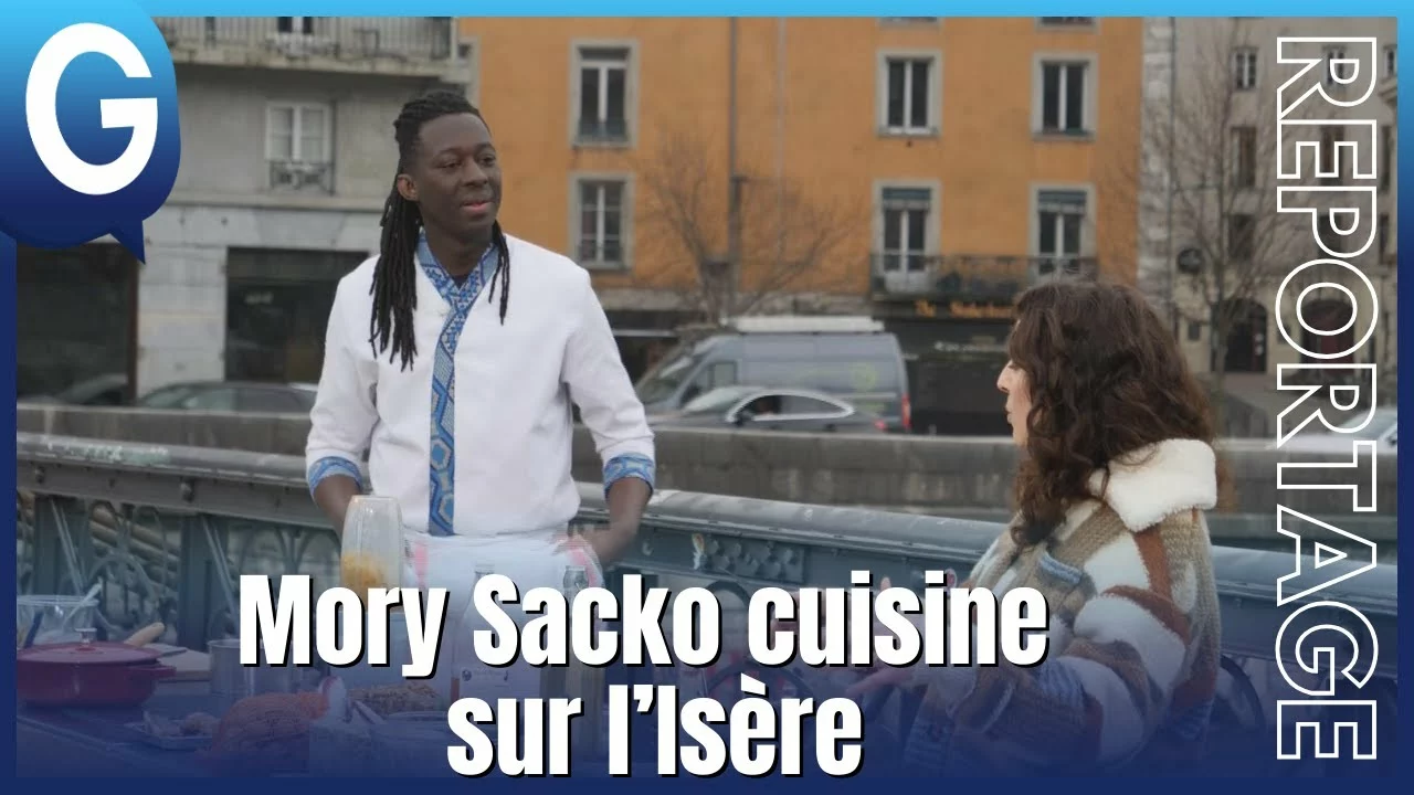 C’est au-dessus de l’Isère, sur la passerelle Saint-Laurent que le chef cuisinier Mory Sacko et l’équipe de production de l’émission « cuisine ouverte » ont monté leur plan de travail…
