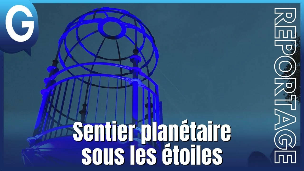 « A l’ombre des anneaux de Saturne », c’est le nom de la toute dernière œuvre inaugurée sur le campus grenoblois, un sentier planétaire à l’image de notre système solaire. Une rambarde rouge en arc de cercle est maintenant visible tout autour de la place derrière le bâtiment Phitem A. Elle représente notre soleil, et chaque barreau, séparés de 1 mètre, équivaut à 70 millions de kilomètres dans l’espace. Les différents corps célestes abrités en son sein gardent les mêmes proportions, avec les planètes gazeuses faites de structures métalliques squelettiques, et les telluriques de boules en granit, comme notre toute petite Terre. Votre chaîne d’infos locale a eu la chance de pouvoir rencontrer les deux artistes créateurs de cette œuvre, Jules Charbonnet et Nicolas Barreau, qui nous expliquent dans quel but ils l’ont designée.